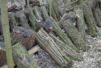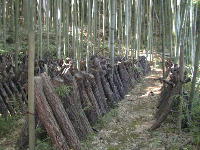 竹林に囲まれたシイタケの