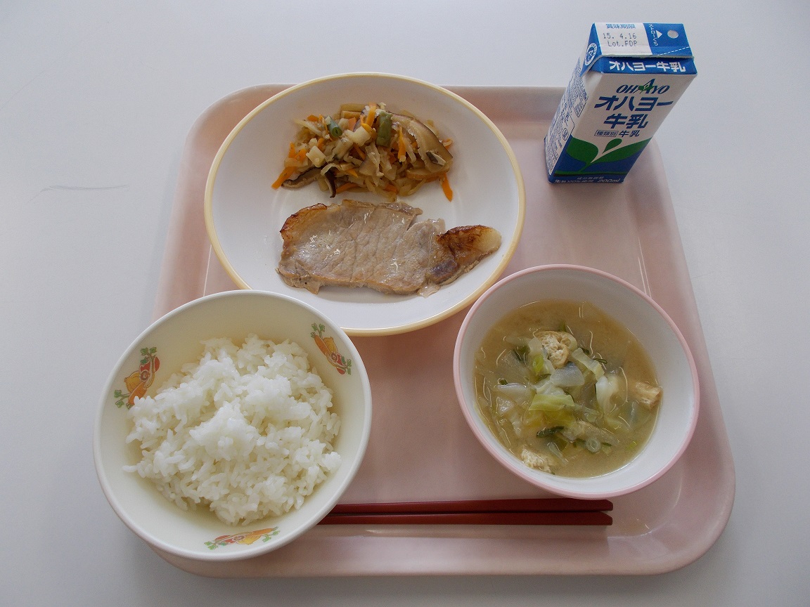 ご飯 牛乳 豚肉の生姜焼き かんぴょうと切り干し大根のきんぴら みそ汁