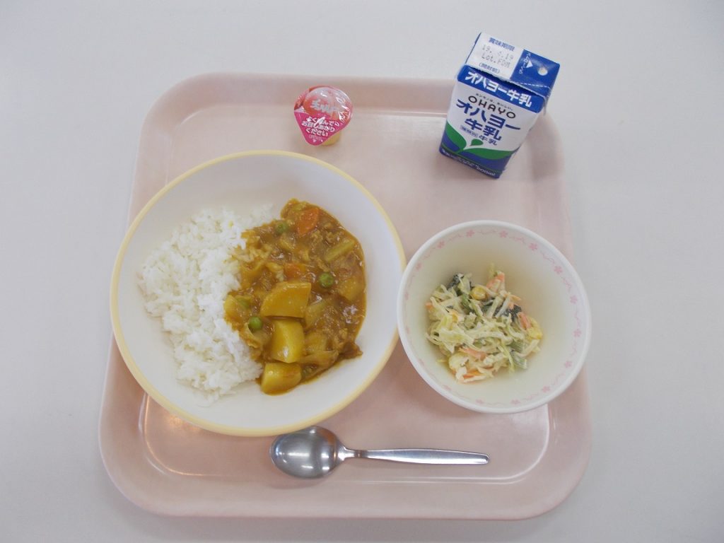 カレーライス 牛乳 青菜のサラダ デザート(一口ゼリー)