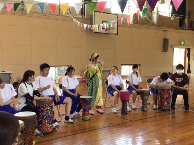 文化芸術による子供育成費総合事業として、FantaRhythm-Okayamaの方が講師できてくださり、たくさんの打楽器を鳴らして盛り上がりました🎵輪になって自由に音を出すことで、音とリズムで会話をし、心と体を開放して繋がっていく時間は、ほんとに楽しかったですね。踊り出したり飛び上がったり、暑い体育館の中がさらに熱気に包まれました。