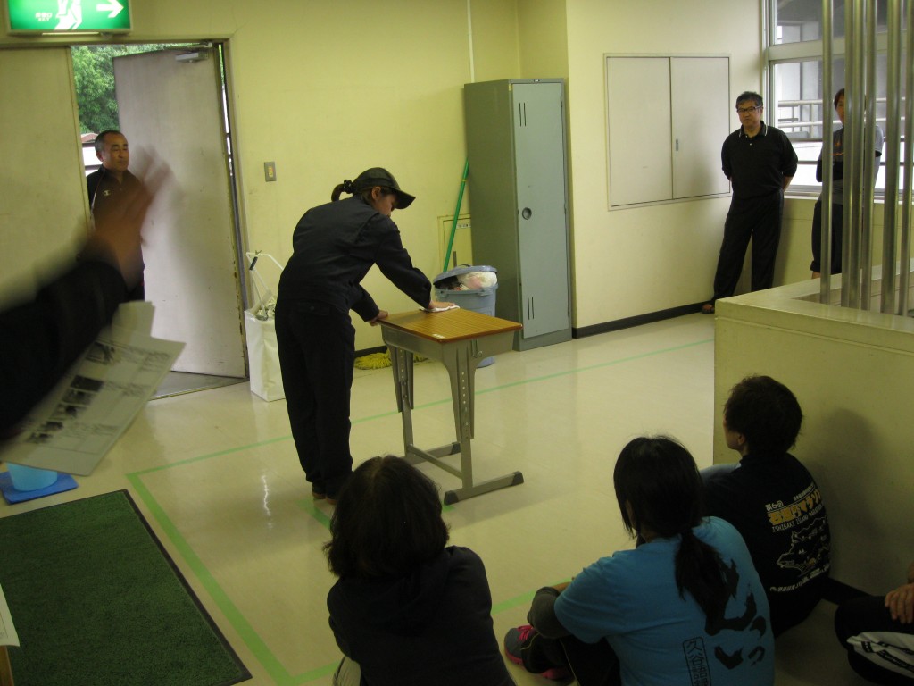 正しいほうきや雑巾の使い方について先生たちが研修をしました。