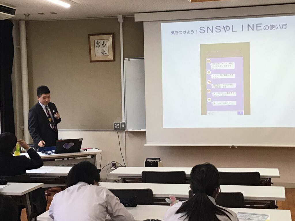備前署生活安全課の方をお招きし「法律教室」を行いました。スマートフォン、インターネットの上手な付き合い方についの内容でした。「書き込み、誹謗中傷のこと」「情報拡散の危険性」「スマホ依存」「課金」などの他、最近増えてきた「特殊詐欺」「闇バイト」などについても学びました。生徒たちは、熱心に話を聞き、話し合いの場面やクイズに答える場面では活発に発言することができました。