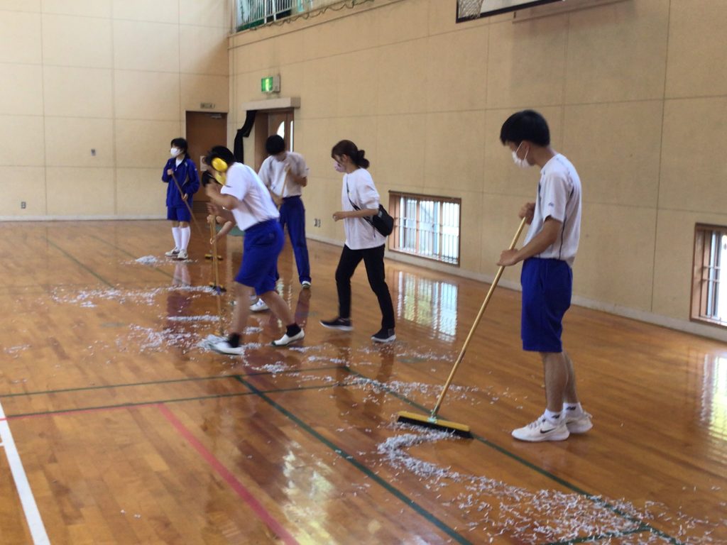高等部2年生は、清掃学習に取り組んでいます。清掃の意義や目的、いろいろな清掃用具の名称や基本的な使い方など学習しています。学んだことを実際の生活で生かすことができるように、みんなのために校内の清掃に張り切って取り組んでいます。そして、地域へ活動の場を広げます。