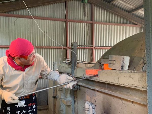 2020年8月6日 / 最終更新日時 : 2020年11月9日 tobisien01 登り窯の様子 焼成最後の日 今朝一時の大焚き、横の小窓から入れる横焚きをしたので、手前の運道の焼成は終わります。 これからは、保温と還元ををするため、小窓から切り炭を投入していきます。小窓から、きちんと並んだ沢山の牛像が透明になって光っているのがみえます。 炭が散ると、バチバチ!と大きな音がしています。 この炭の力で、焼き物の表面に備前焼の土が還元され、色が白く抜けていくのです。 手前の運道では焼成が終わり、焚口を封印しました。