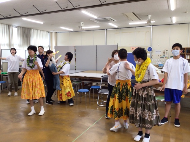 ※アクティブタイム‥身体を動かしてスポーツやレクリエーションをするタイム、今日は外部講師の武用先生においでいただき(フラダンス)を楽しみました。