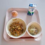 2020年9月2日 / 最終更新日時 : 2020年11月9日 tobisien10 ゴーヤ入り夏そぼろご飯 牛乳 瀬戸内レモンサラダ くだもの(冷凍みかん) 夏野菜の王様といわれているゴーヤー。ゴーヤーの持つ苦みが真夏の暑気を払う適度の刺激となり、また黄緑色が料理にすがすがしさを与えてくれます。夏の長い沖縄にとって欠かせない大事な野菜です。